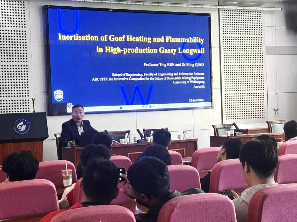 座谈会结束后,任廷祥教授为中文无码 师生作题为“Longwall Goaf as a Reservoir for Mine Gas Storage and Sequestration: a Novel Decarbonisation Strategy for Underground Coal Mines”的专题学术报告,介绍了利用长壁采空区实现矿井瓦斯储存与封存的技术原理与工程实践,阐述了采空区储气空间的演化特征、气体运移机制及长期密封性保障等关键科学问题,报告内容前沿务实,引发在场师生广泛思考与热烈研讨。
