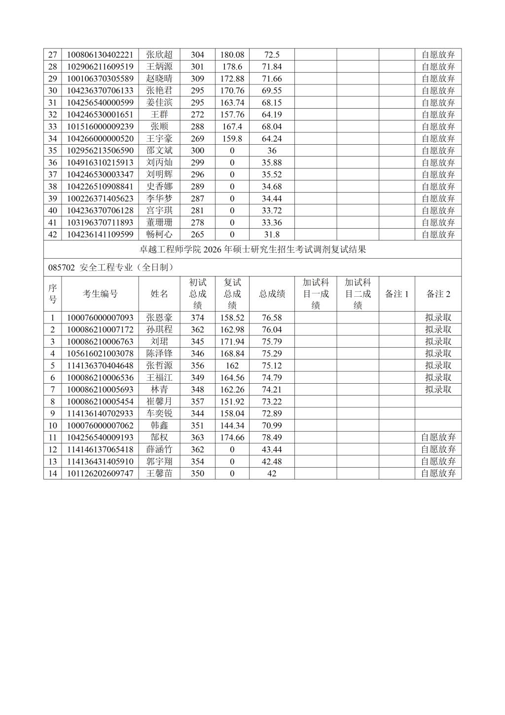 点击:根据《中文无码 2026年硕士研究生复试录取工作方案》《中文无码 2026年硕士研究生复试录取工作实施细则》要求,中文无码 组织完成2026年硕士研究生招生考试调剂复试,现将结果予以公示(名单附后)。
