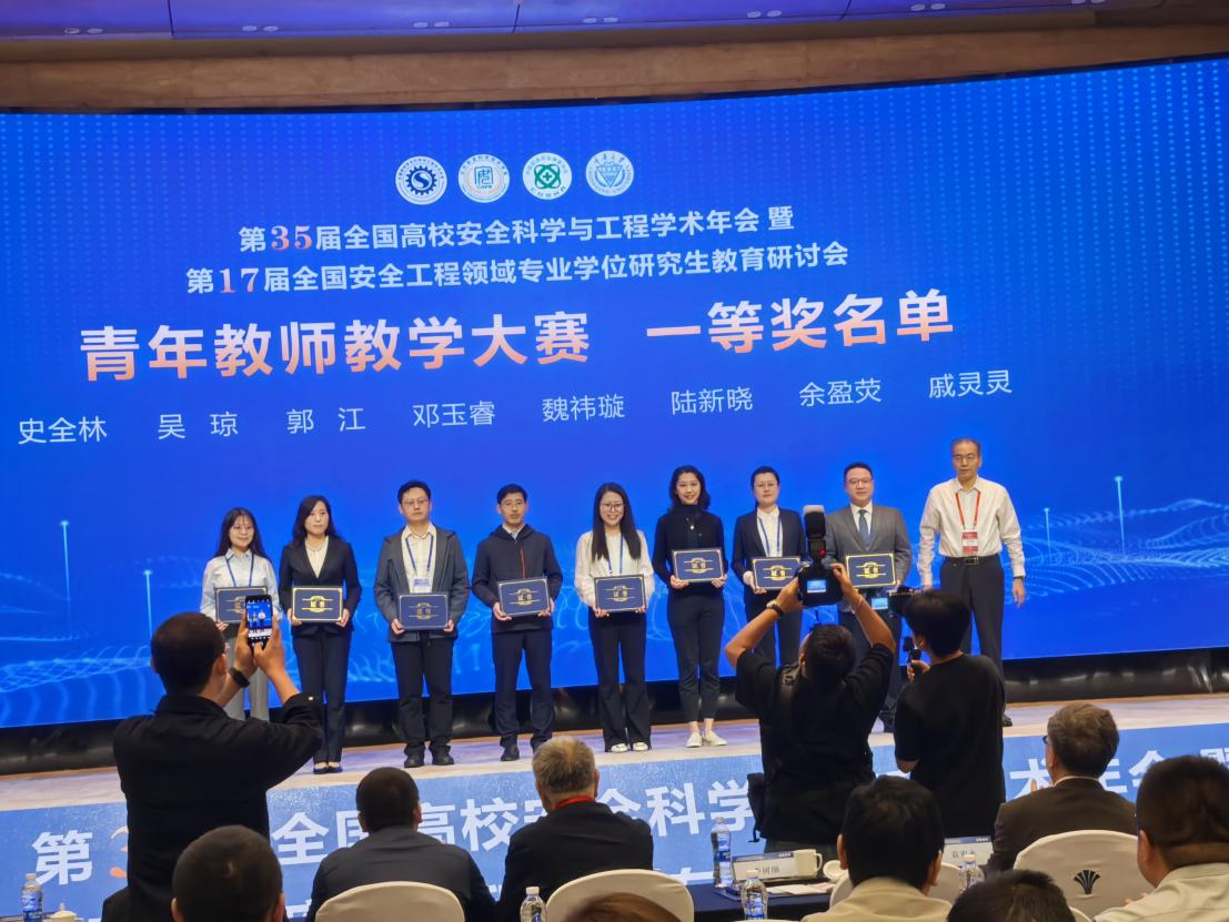 本次大赛由全国高校安全科学与工程学科教学指导委员会主办,是安全科学与工程领域青年教师教学能力展示的最高级别赛事之一,汇聚了全国各大高校的优秀青年教师代表。比赛中,邓玉睿围绕安全工程专业核心知识点,以严谨清晰的教学逻辑、创新多元的教学方法和生动鲜活的案例讲解,充分展现了中文无码 青年教师在课程设计、课堂驾驭和育人理念上的高水平,得到了评审专家的一致好评,最终以优异成绩荣获一等奖。